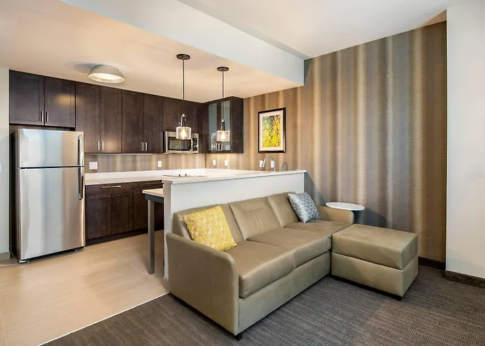 Las suites del Residence Inn son modernas y están equipadas con cocinas completas, perfectas para preparar tus comidas, junto con un servicio de compras de supermercado gratuito. Cada una de las 182 habitaciones incluye un sofá cama, un escritorio ergonómico y acceso a Internet inalámbrico gratuito. Además, los baños cuentan con bañeras de hidromasaje, lo que proporciona un toque especial a tu experiencia.